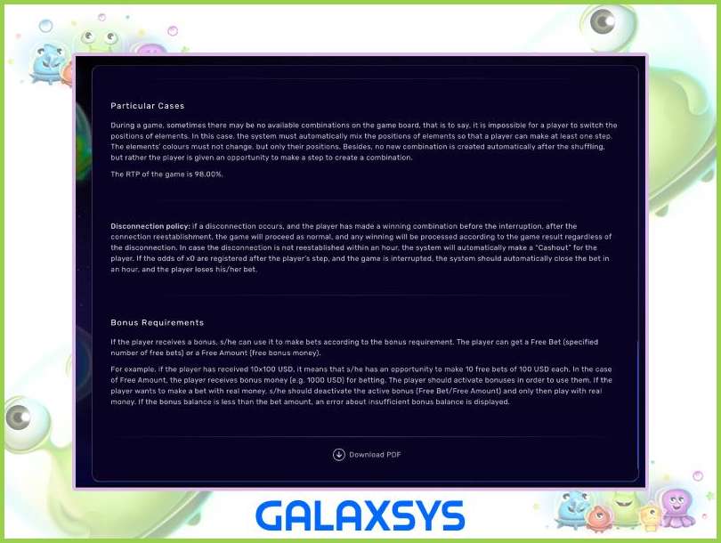 Cosmo Saga impressed me with its mechanics. Here you don't just press a button like in standard slots, but actually think through the moves to make combinations. I especially like the fact that elements disappear and new ones fall in their place - it creates a sense of endless movement. And the random multipliers make each move unpredictable. Perfect, I recommend it!